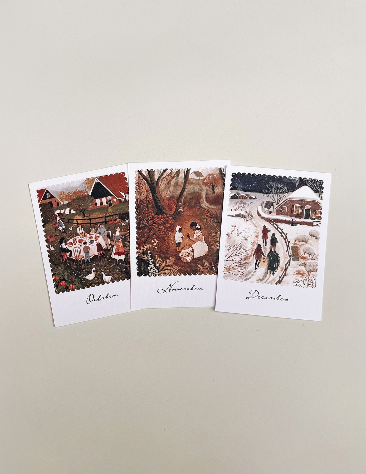 Celebrate each month with this set of 12 display cards (A6), each thoughtfully painted to capture the mood of the season.